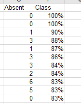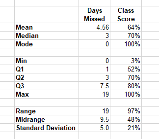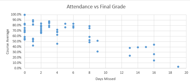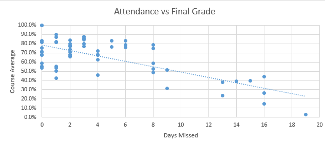 - For data in the range (0 ≤ days missed ≤ 19) you can use this equation to estimate the class grade.
