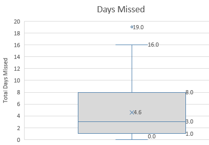 - In both cases it looks like 19 days missed with 3% is an outlier