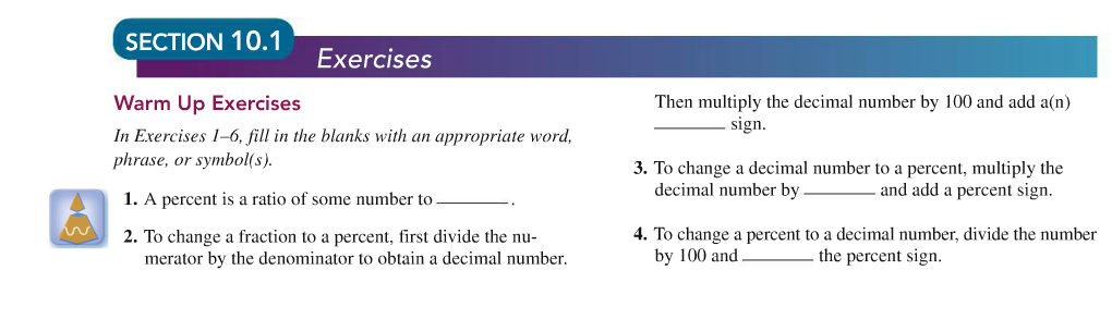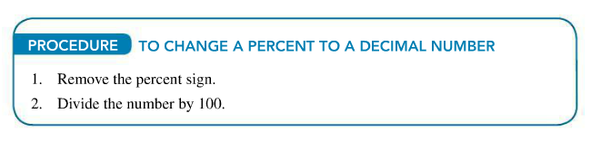 - Explain how to change a percent to a decimal number.